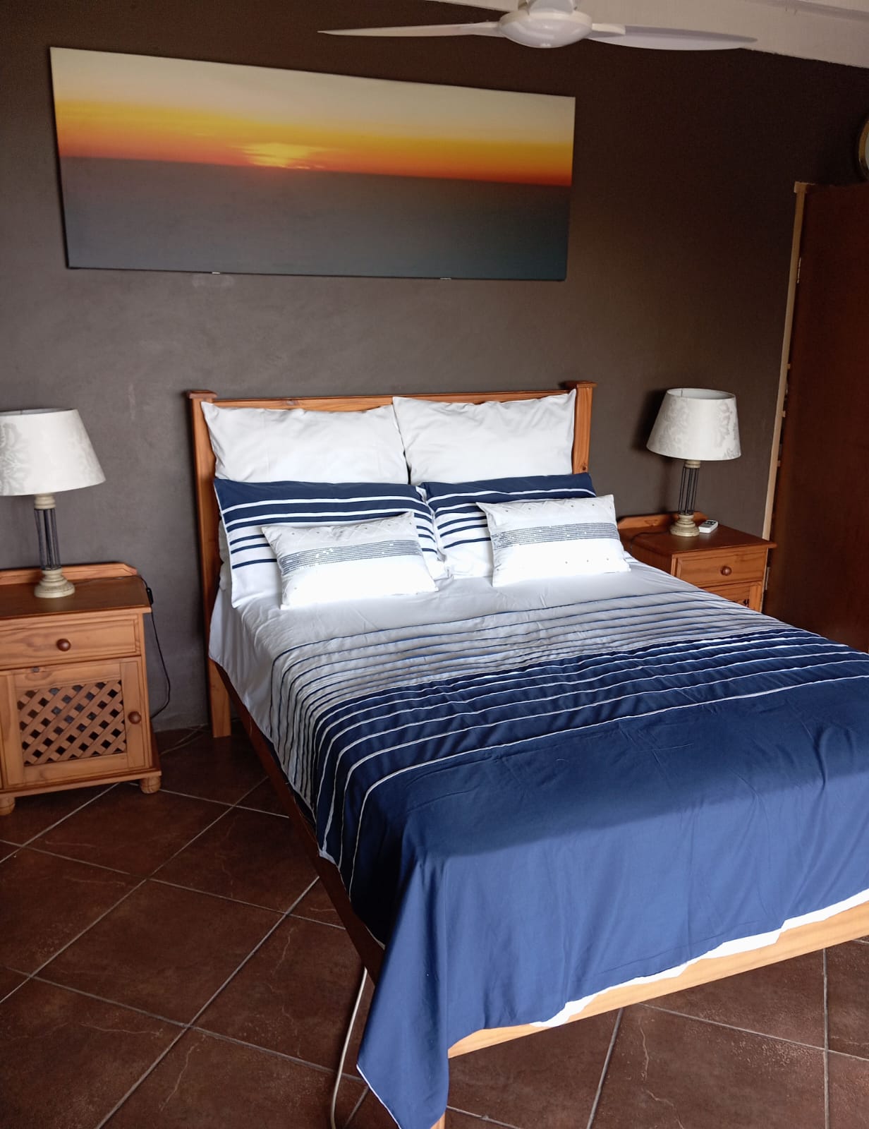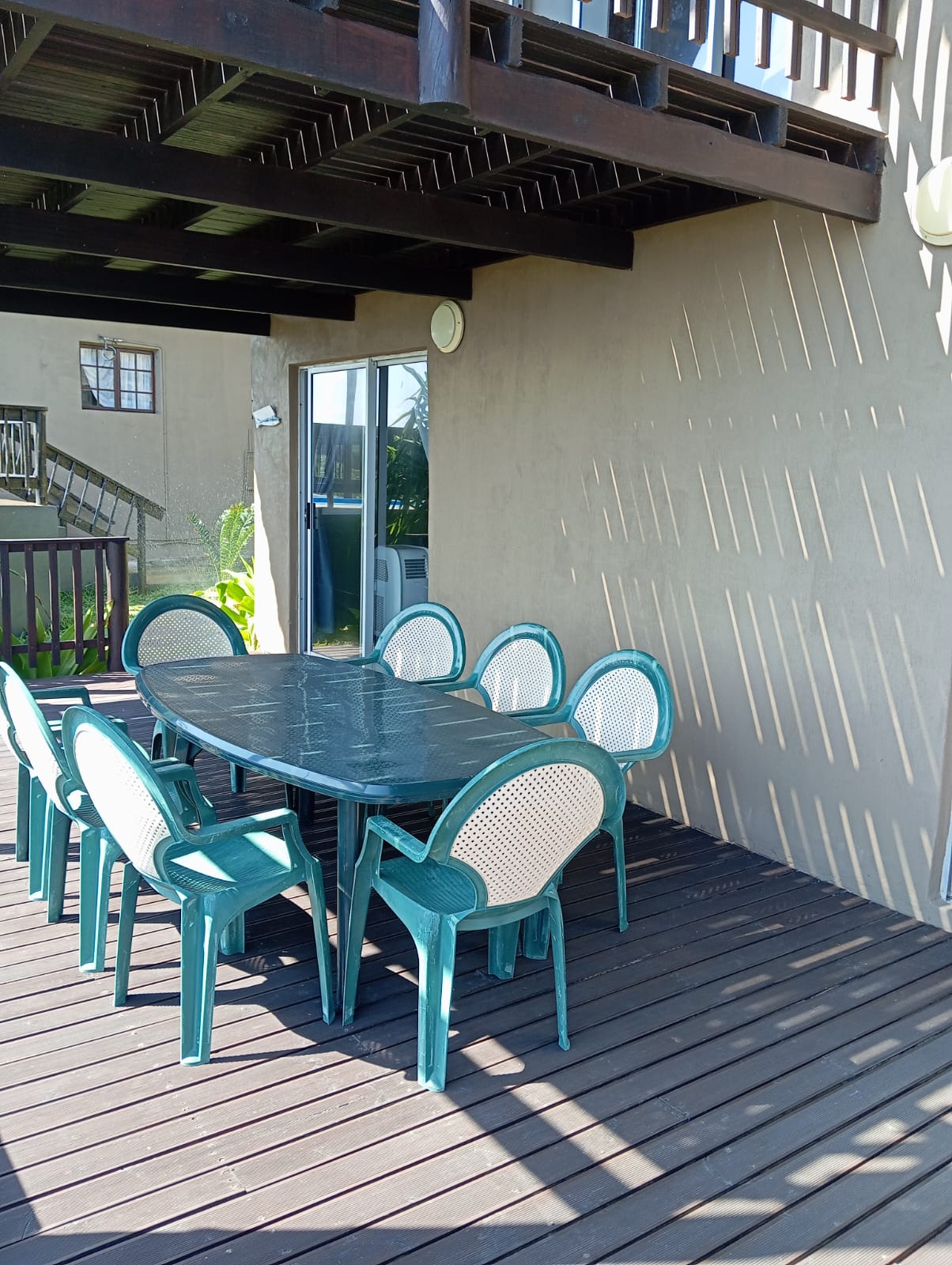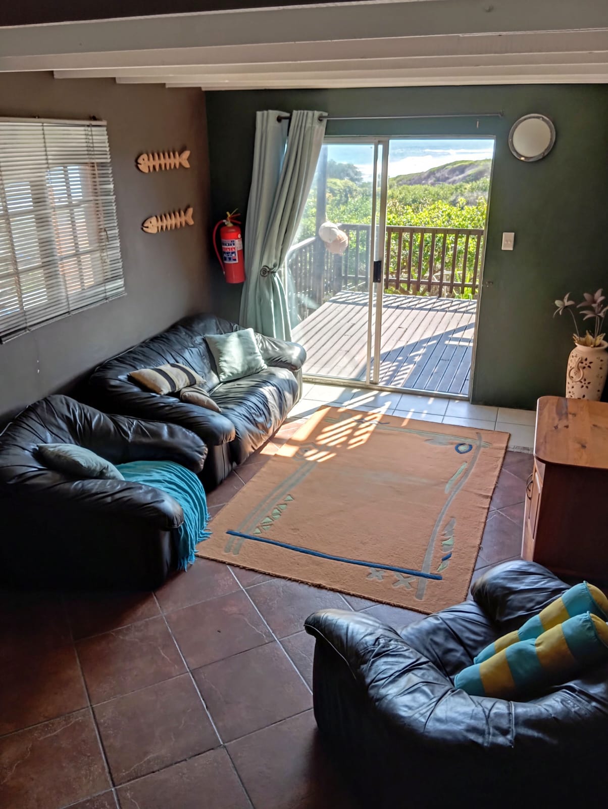 This spacious 8 sleeper family home has stunning sea and forest views and can sleep up to 8 guests. Open plan kitchen and lounge area. Enjoy breathtaking sunsets from west facing deck and balcony. Sheltered braai area next to the kitchen. Double covered parking available.