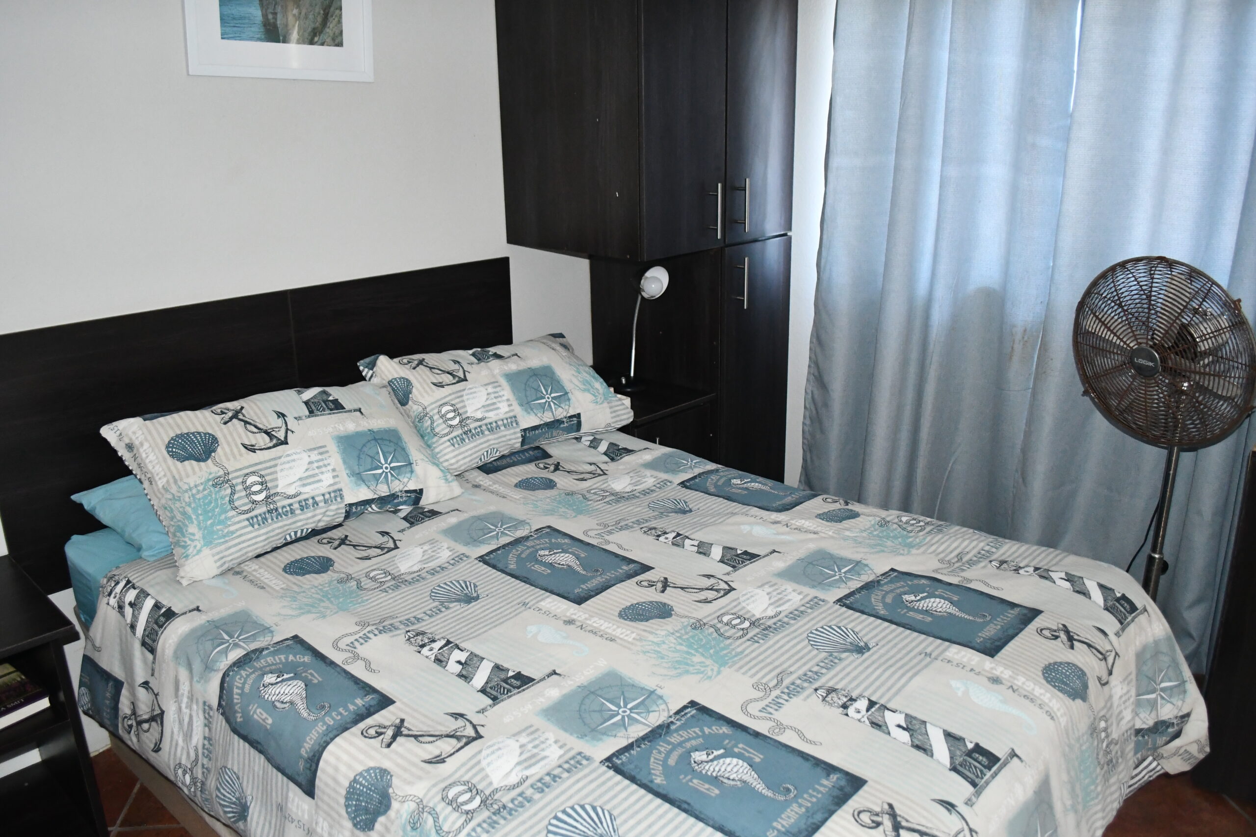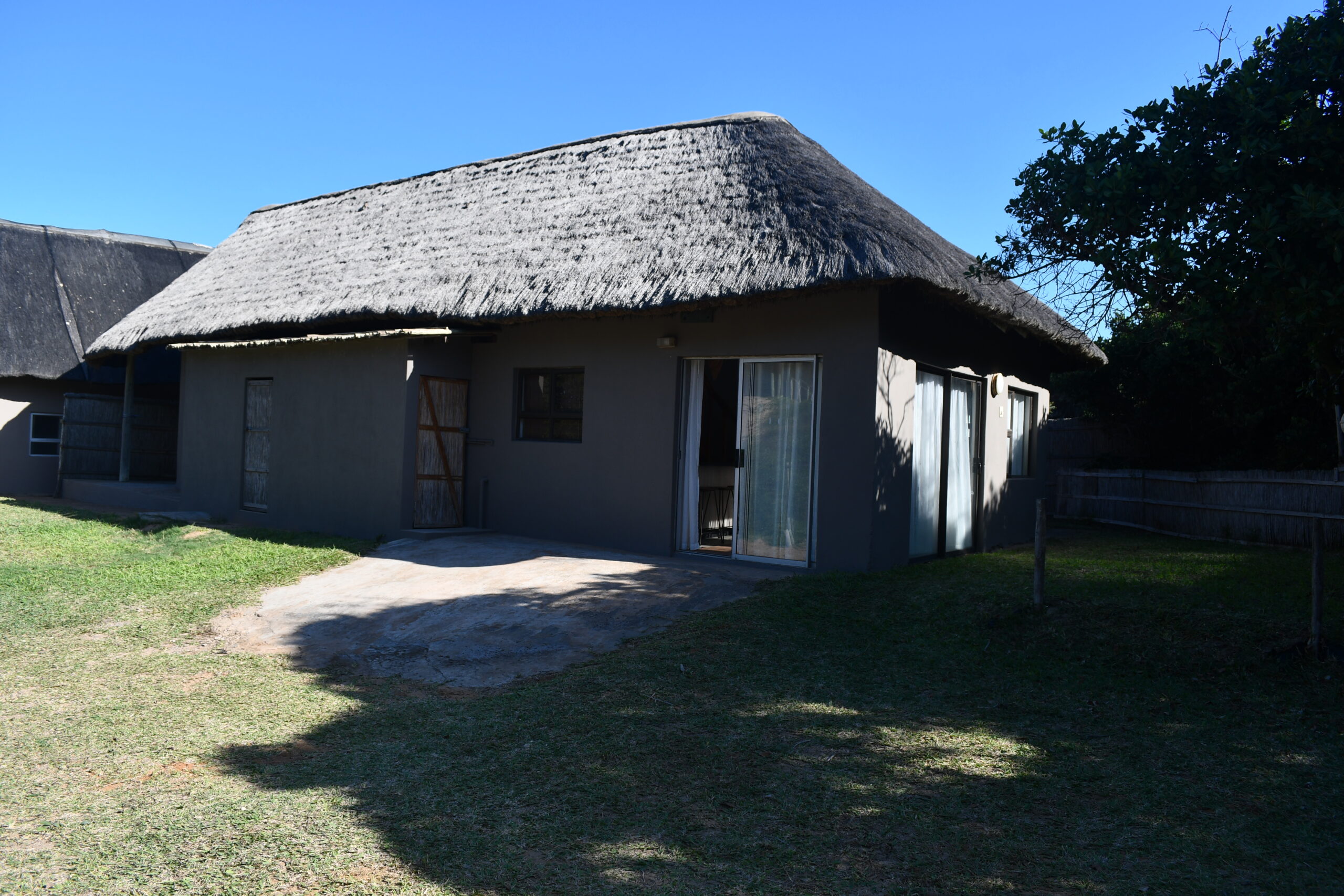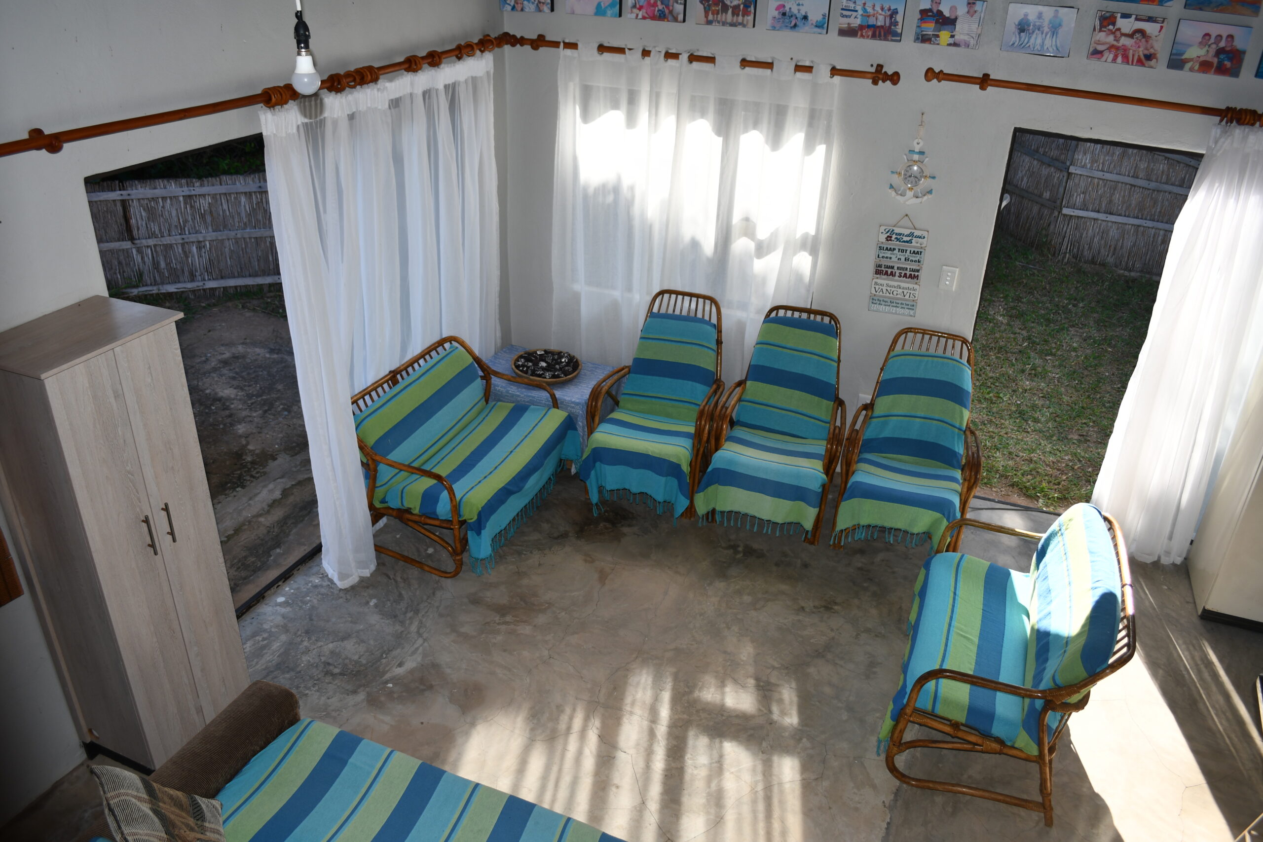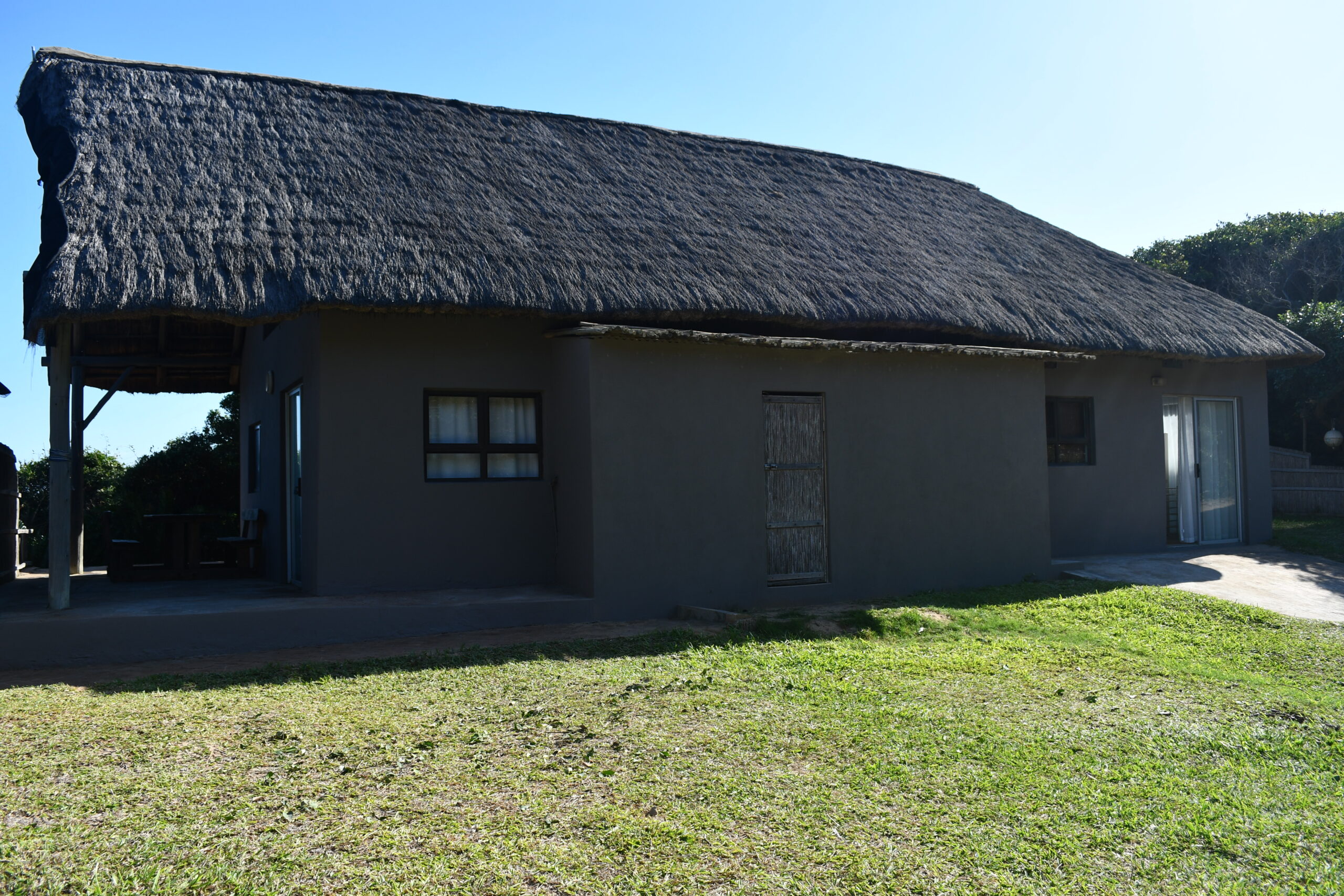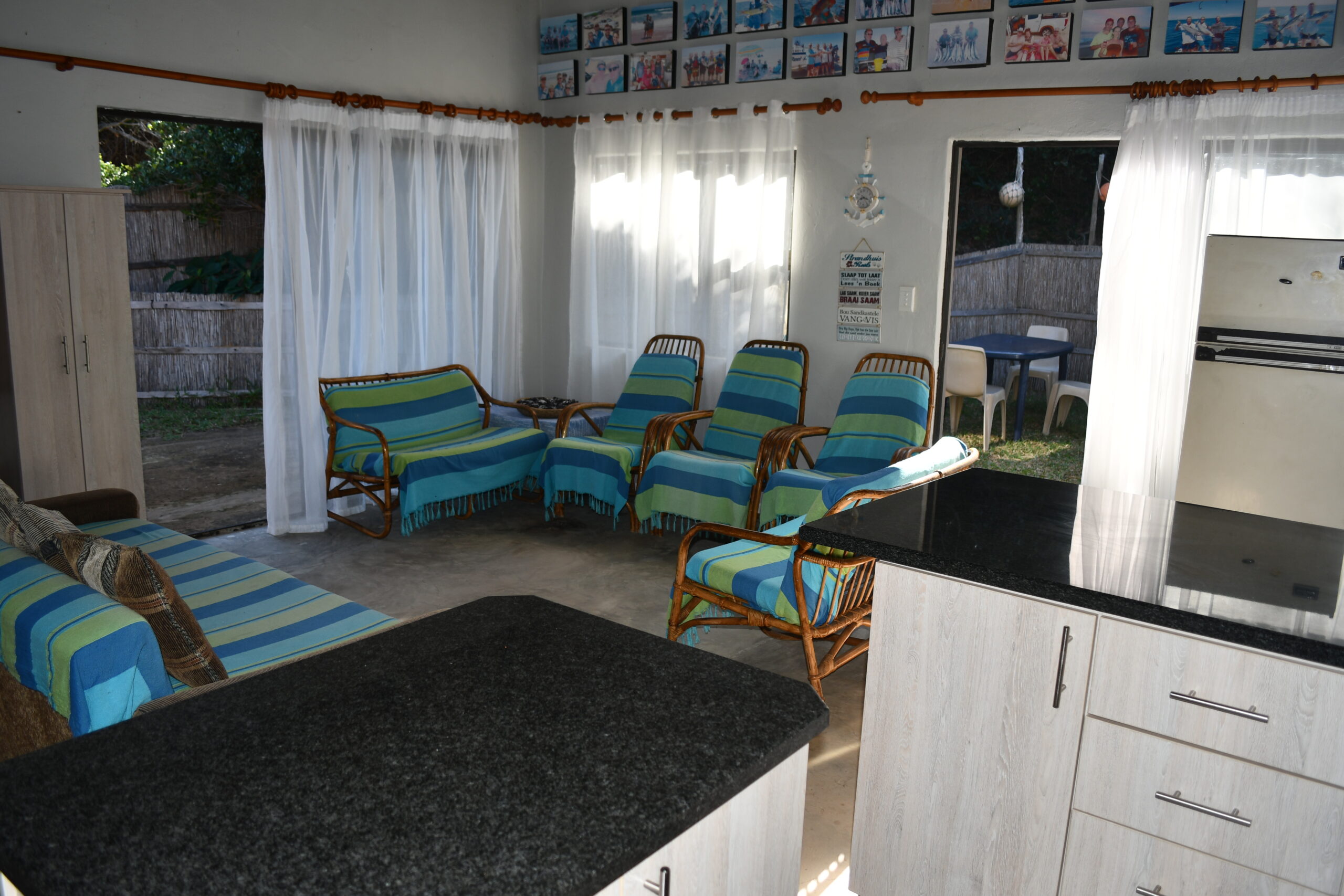 Spacious 10 sleeper holiday home very close to the beach. Three double bedrooms and an open plan loft area with 4 single beds. Open plan kitchen and lounge with three sliding doors allowing cool sea breeze to flow through. One bathroom with extra toilet plus private outside bathroom. Partial sea view from patio.