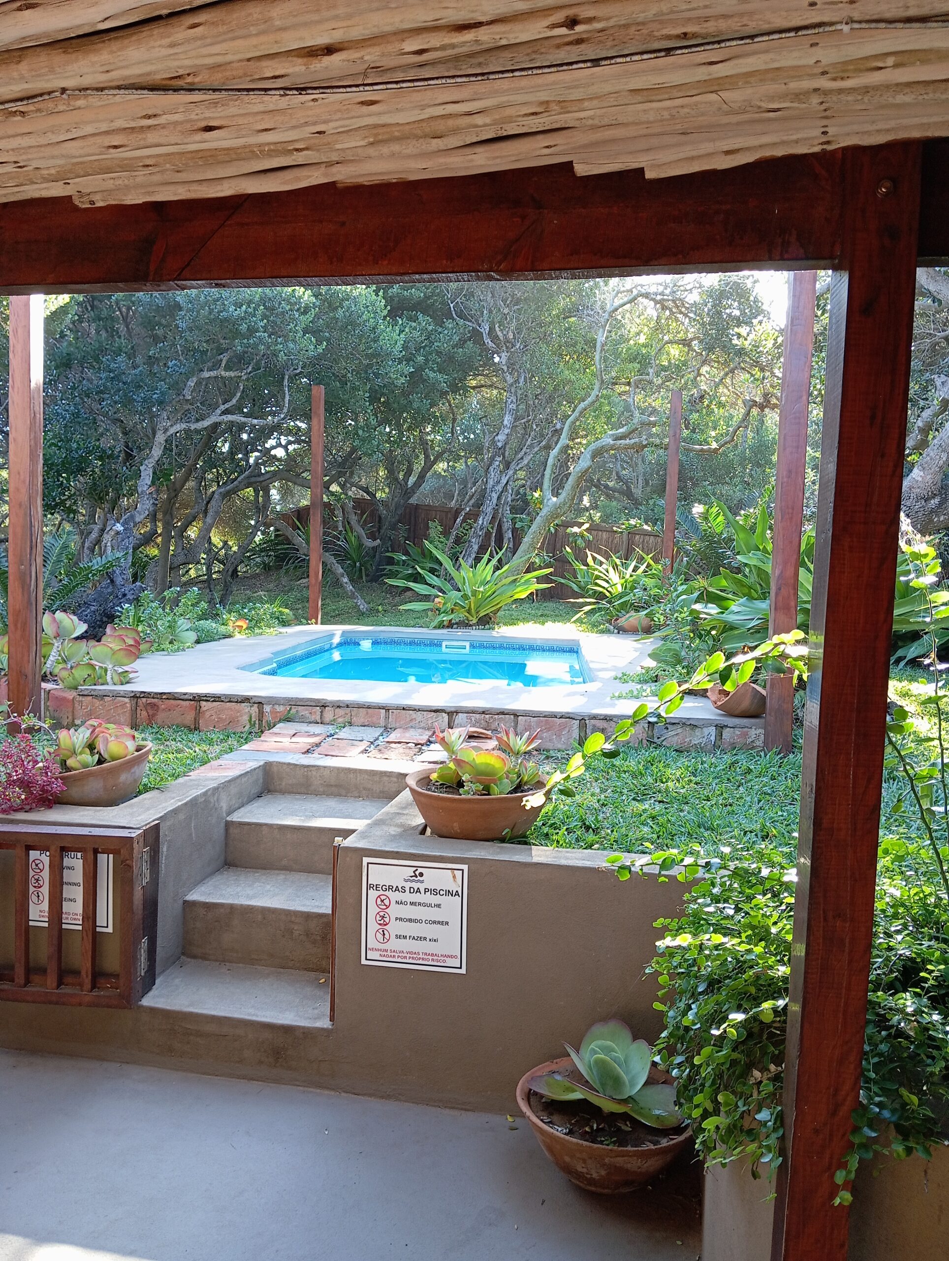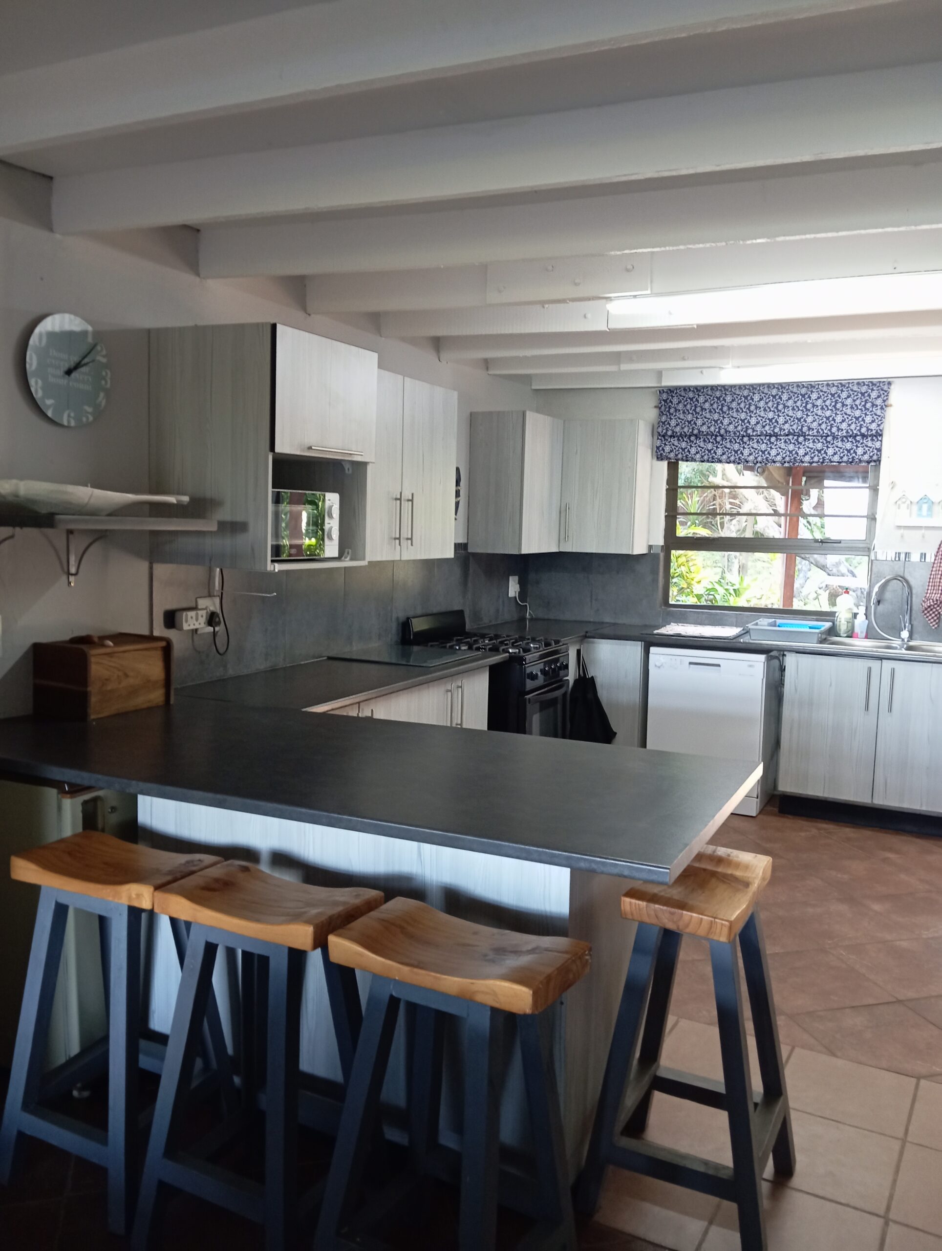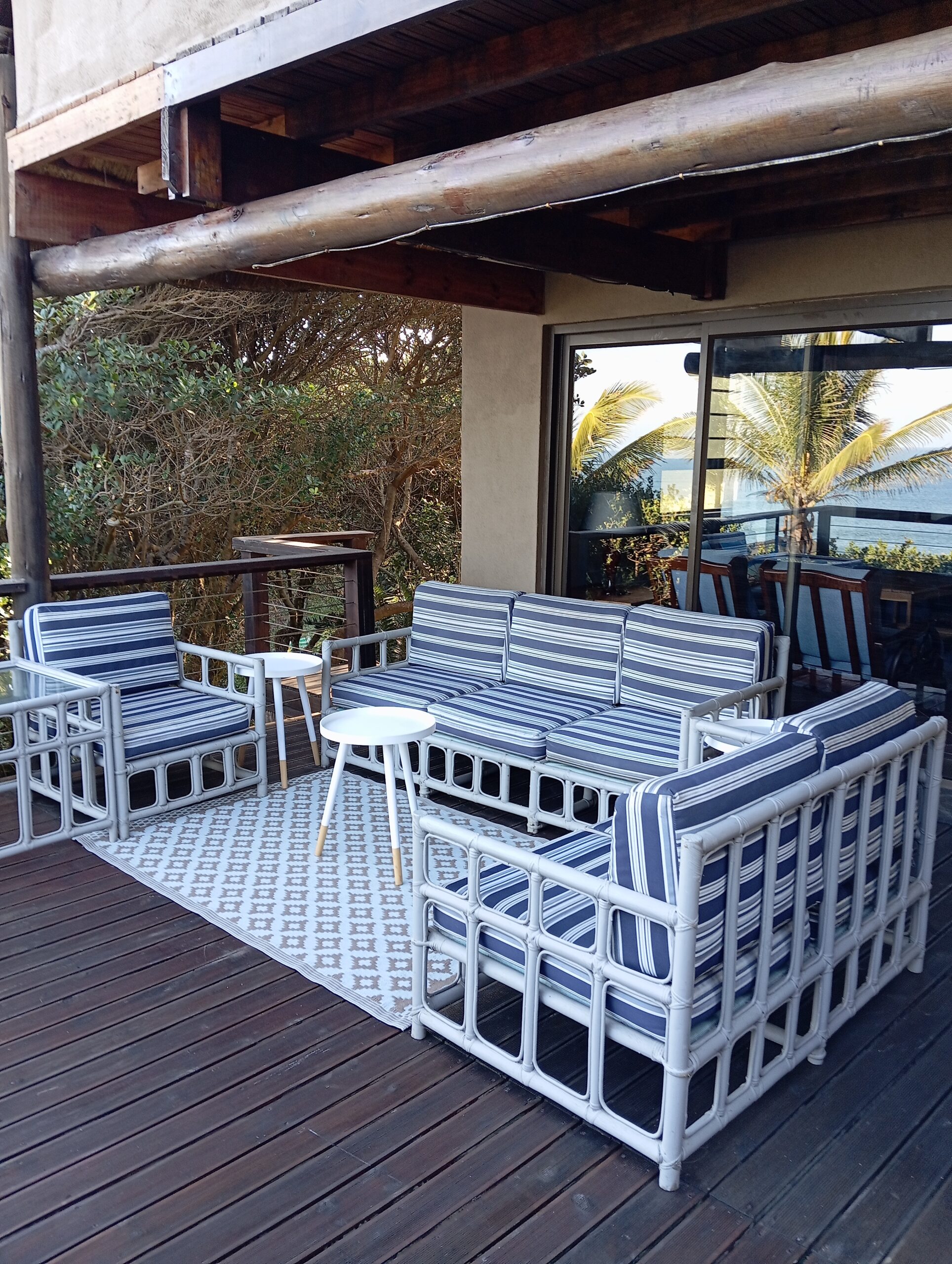 Beautiful 10 sleeper spacious self catering house with panoramic ocean view and lovely garden. The open plan kitchen and lounge area link the deck to the large covered back patio where there are barbeque facilities, a pizza oven and large 12 seater dining table. The gorgeous sparkling pool is right next to the patio in the private shady garden.