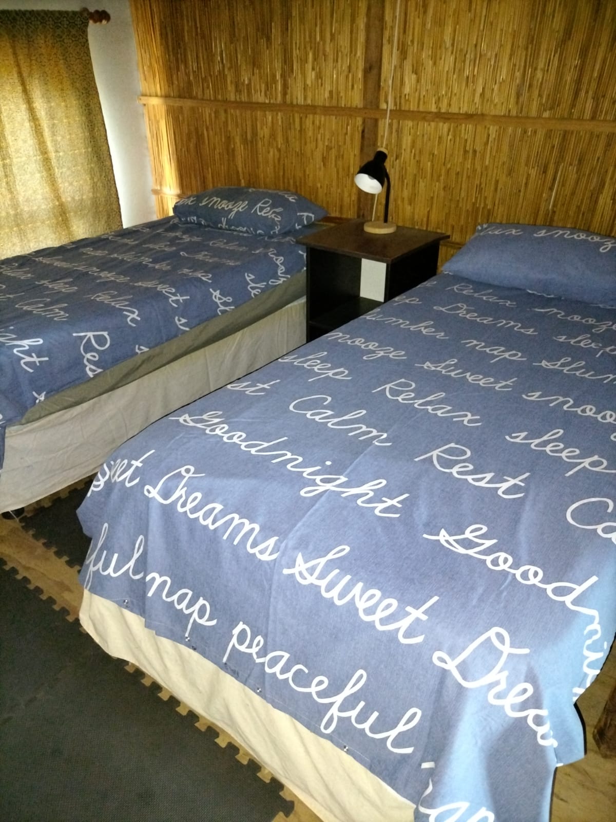 8 sleeper family chalet close to the beach.  Two double rooms and two twin rooms.  Shower and separate toilet.  Seating area and open plan kitchen.  Sea view from patio.