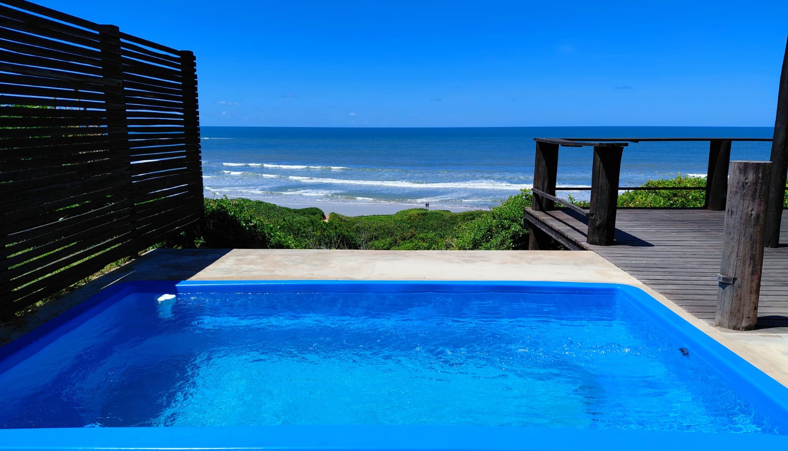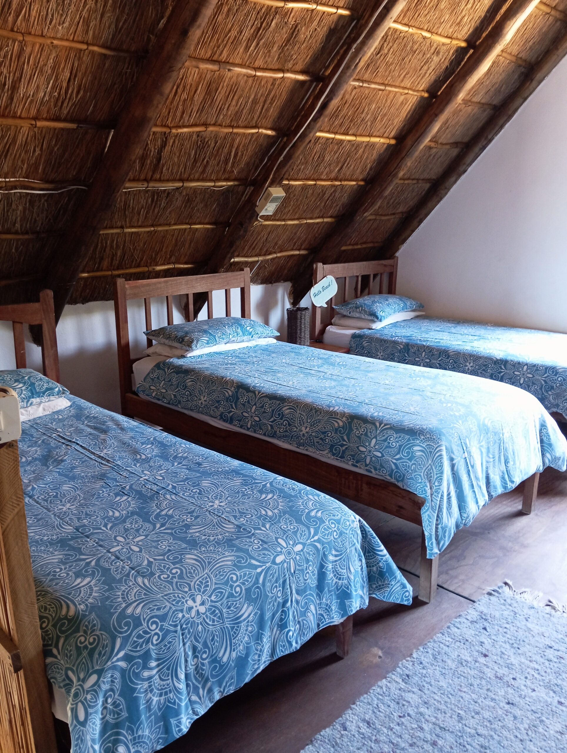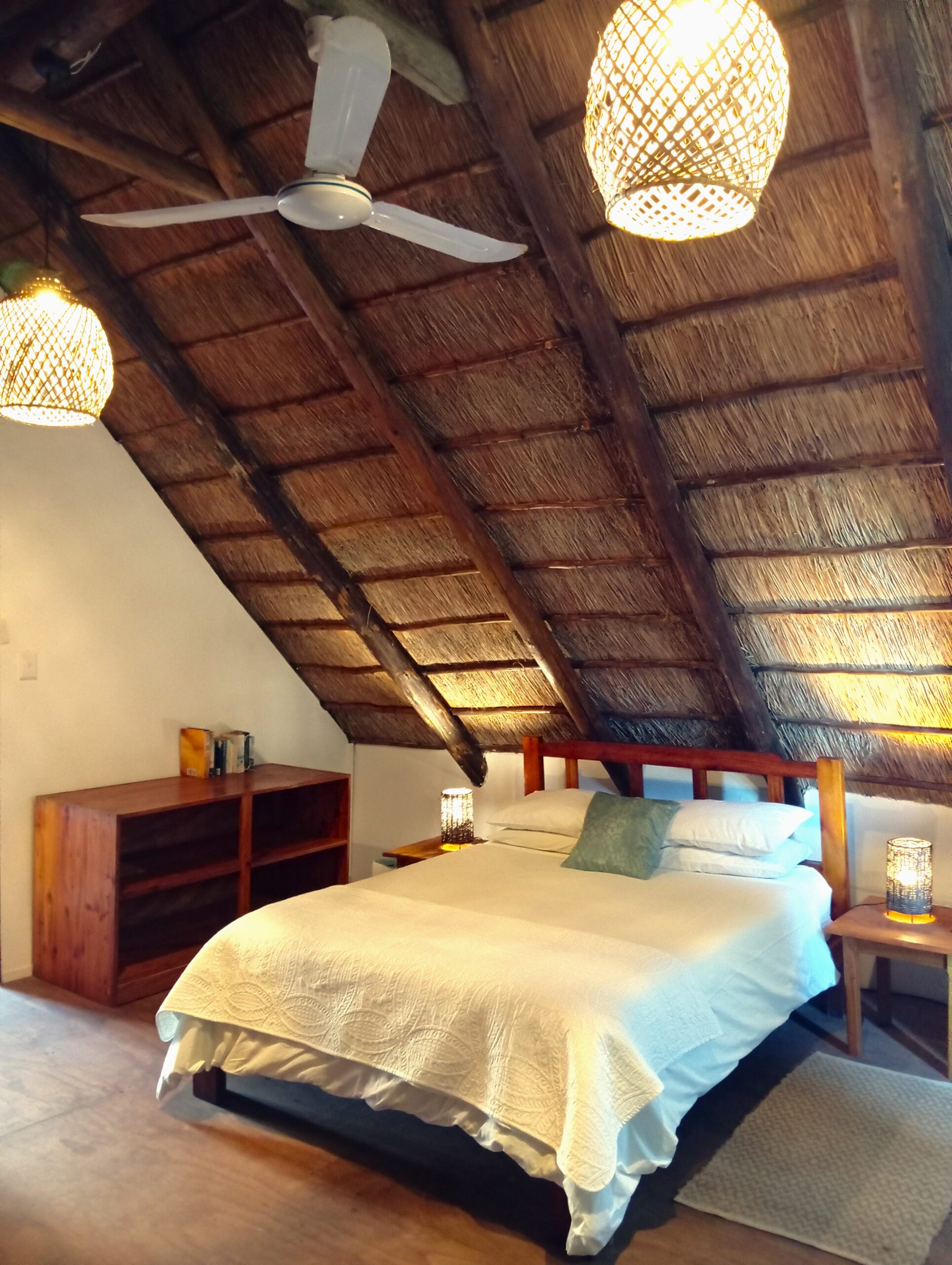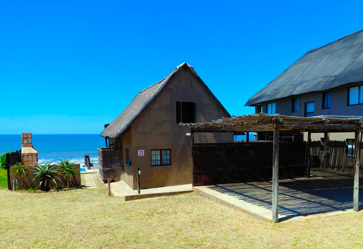 10 sleeper family chalet with unobstructed panoramic ocean and beach view. Double room and twin room downstairs, main bedroom upstairs with queen size bed and private with balcony. Children’s room upstairs with four single beds. All bedrooms have ceiling fans.
