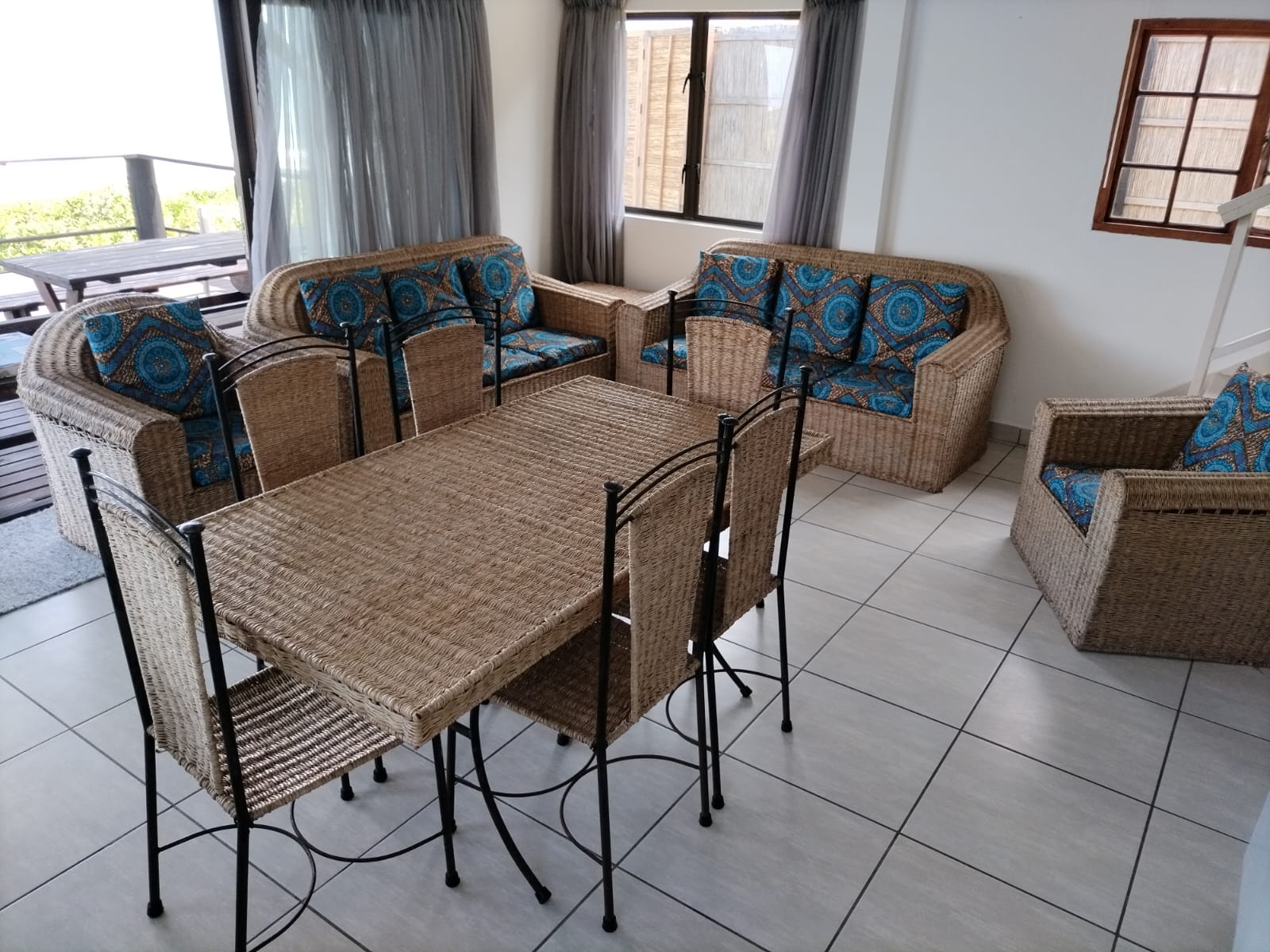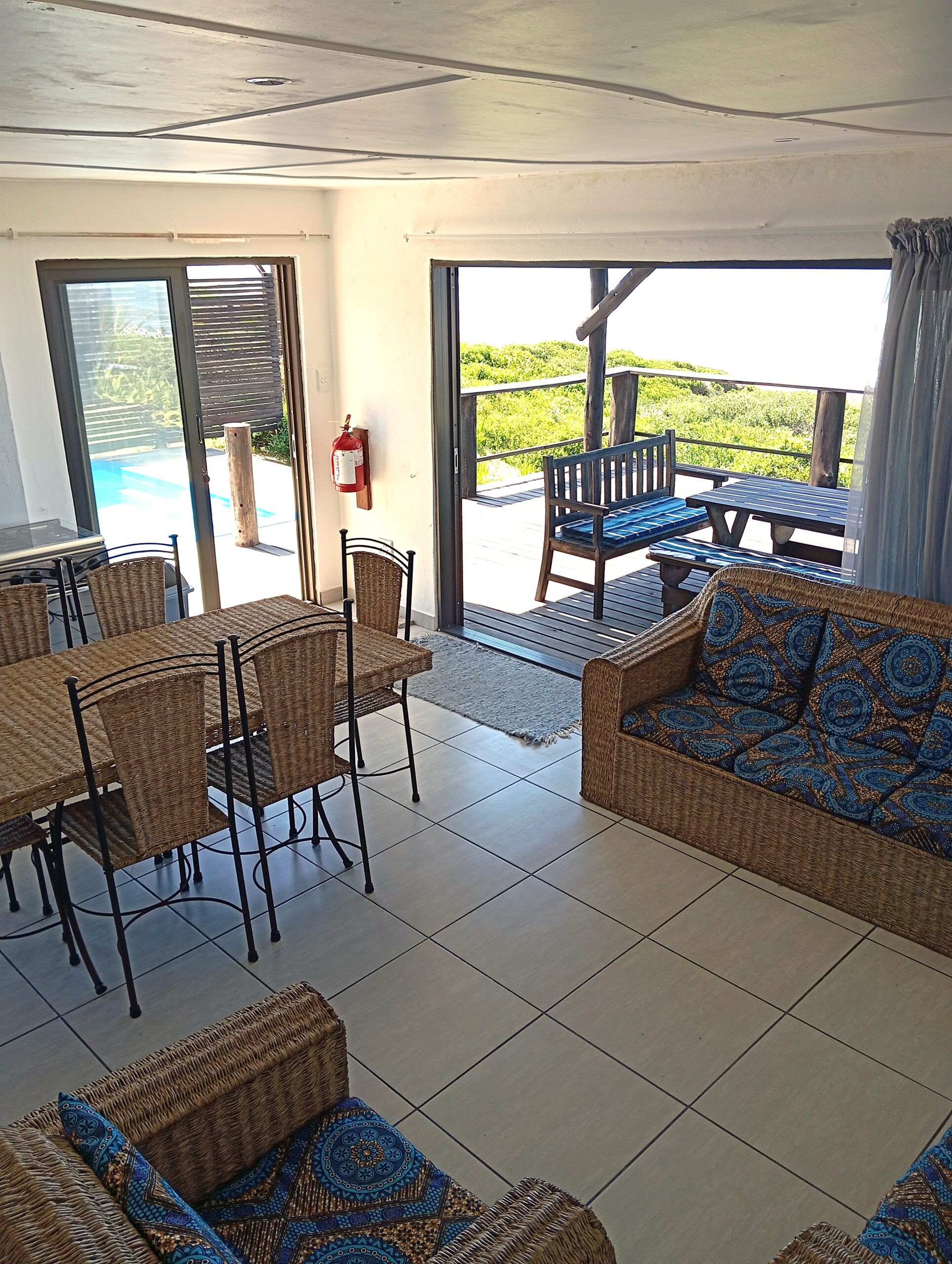 Open plan kitchen and lounge with dining table and seating area. Private walkway directly to the beach.