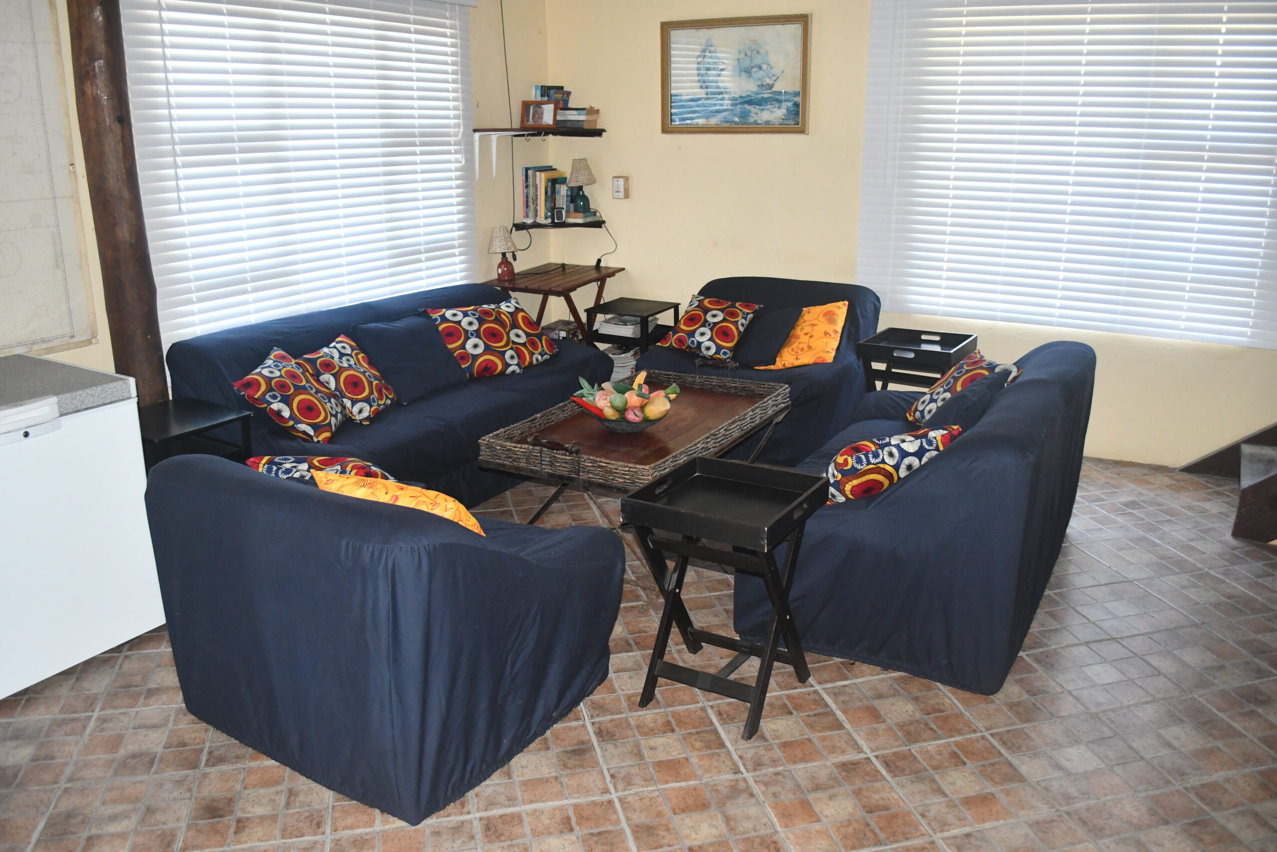 This unit can be rented privately or in conjunction with Unit 37 for larger groups with maximum of 16 guests. The communal lapa between the two units make these two houses ideal for larger groups. The balcony offers the perfect vantage point to do whale watching! Nice little table for upstairs guests to use for a card game during rainy days. Seating areas in living room, upstairs, on the patio and under the lapa.